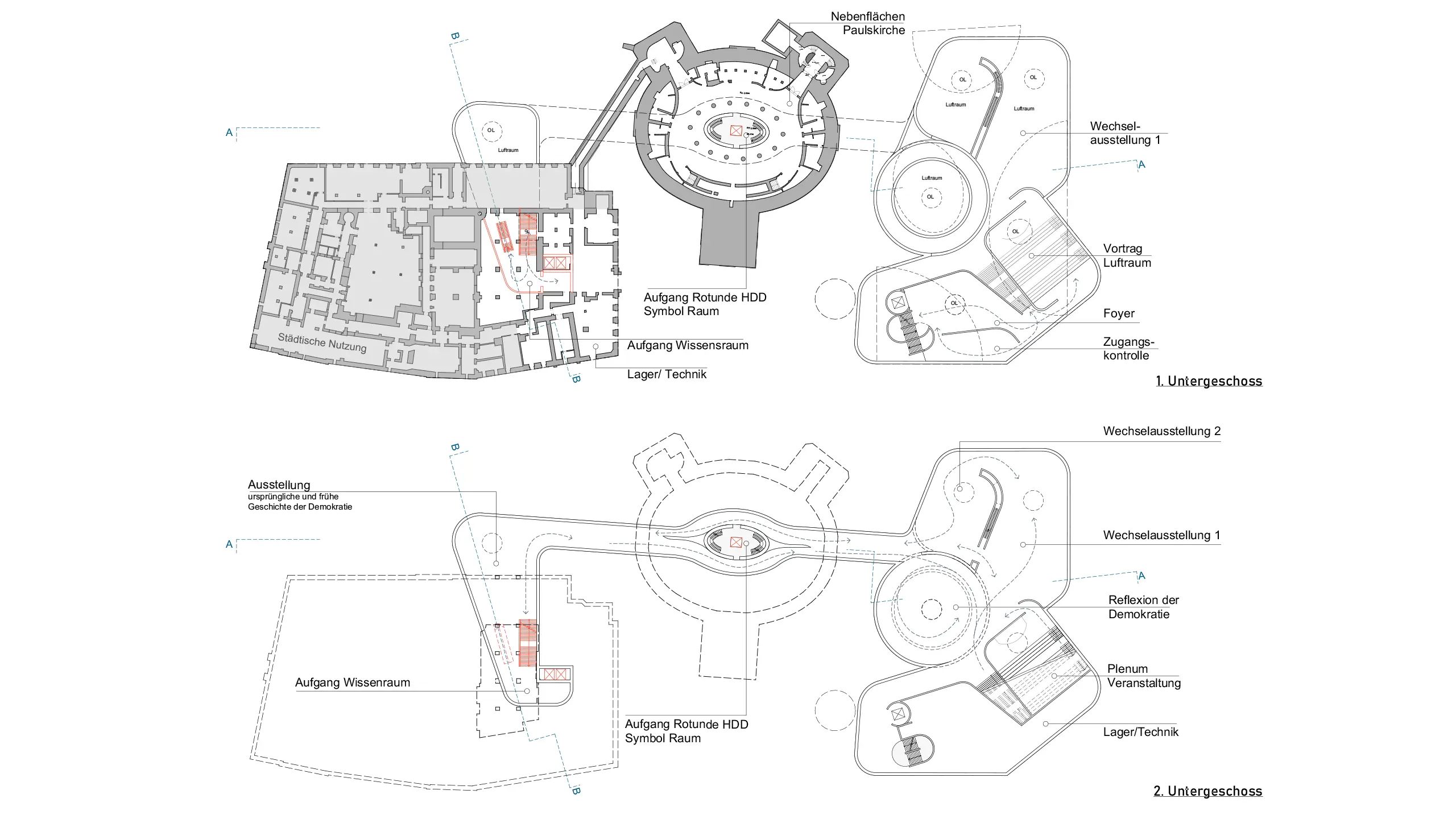 Demokratie ist keine Fassade, sondern ein Raumsystem, in dem Freiheit gestaltet und organisiert wird. Unser Konzept verbindet Freiraum (Paulsplatz), Symbolraum (Paulskirche) und Wissensraum (Kämmerei) zu einem „Weg im Raum“. Die Besucher entscheiden selbst zwischen Überblick und Vertiefung.